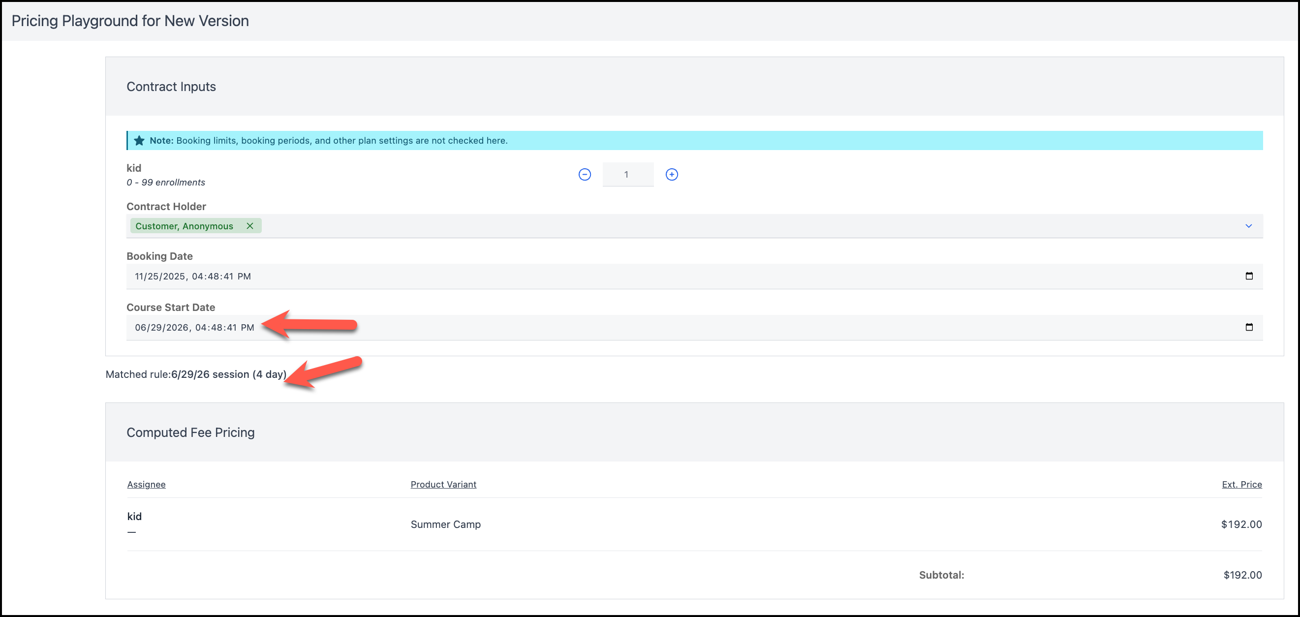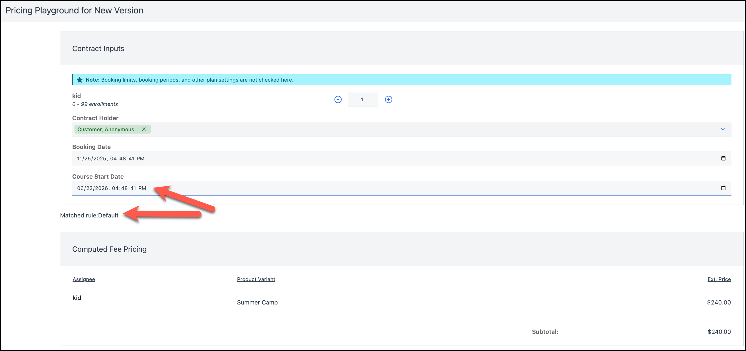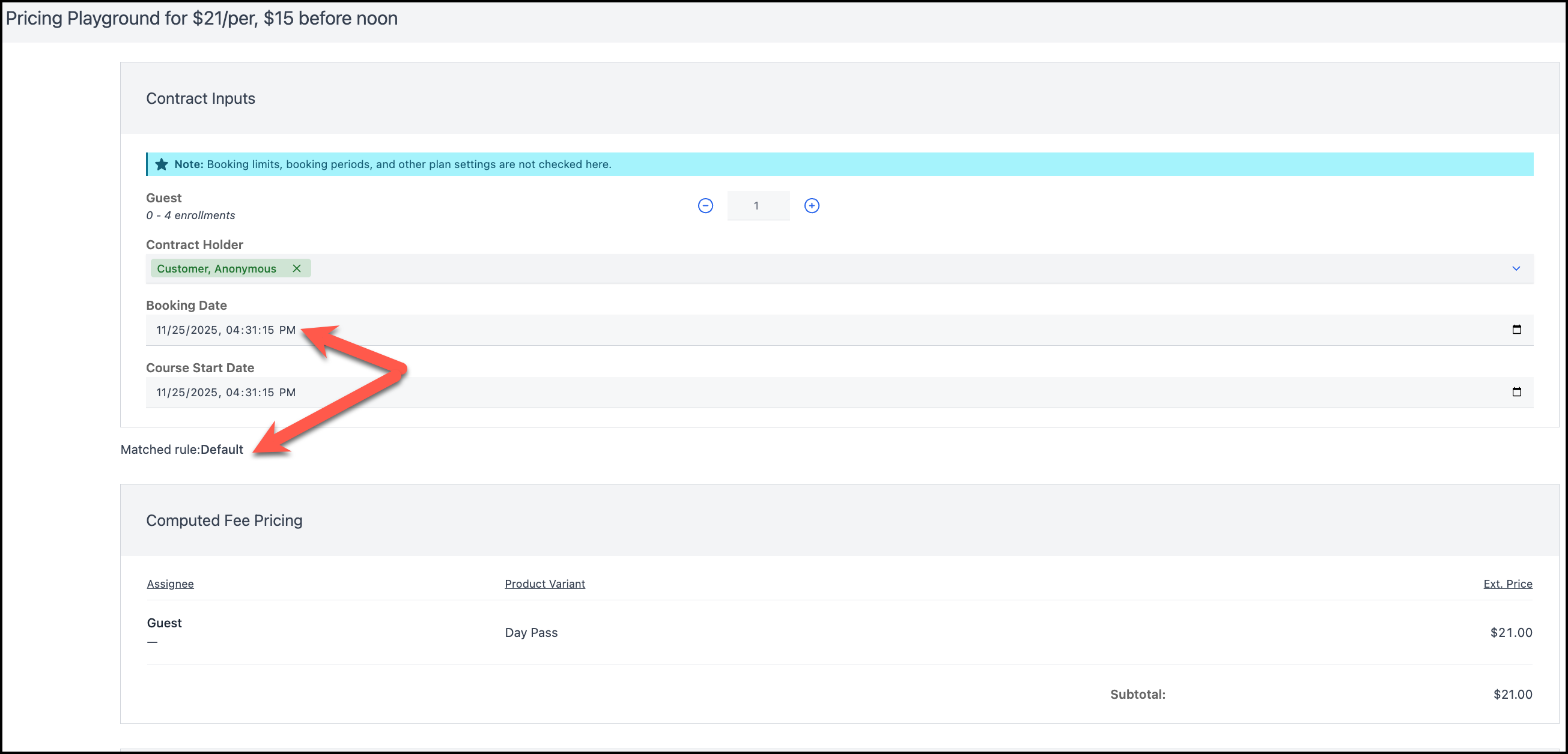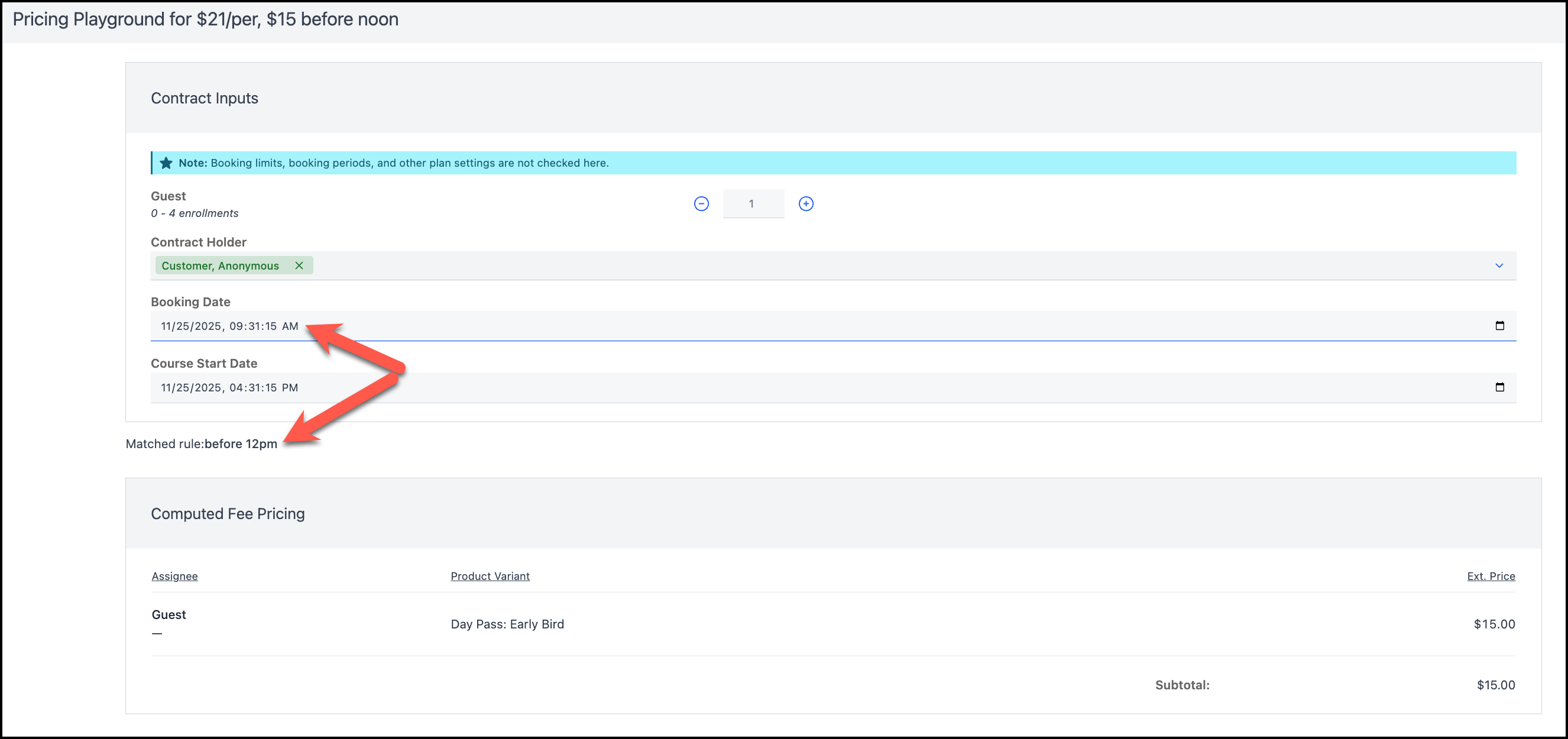 Test in the pricing playground by adjusting the Booking Date and Time!