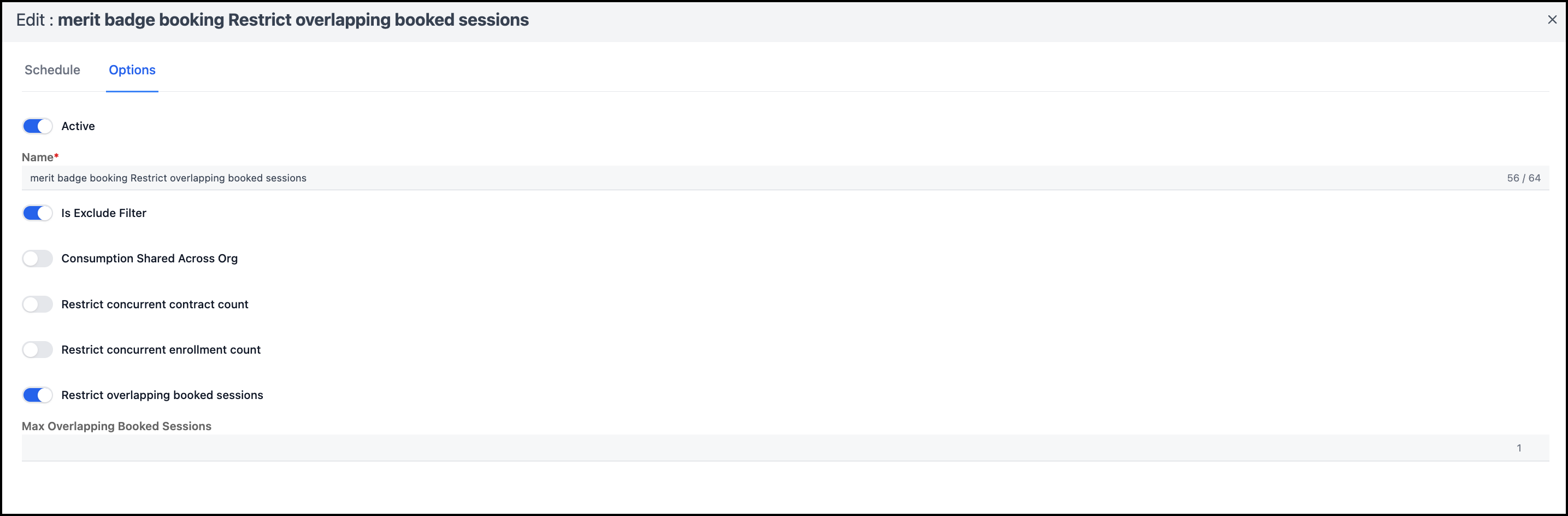 • Restrict Overlapping Booked Sessions - ON - 1