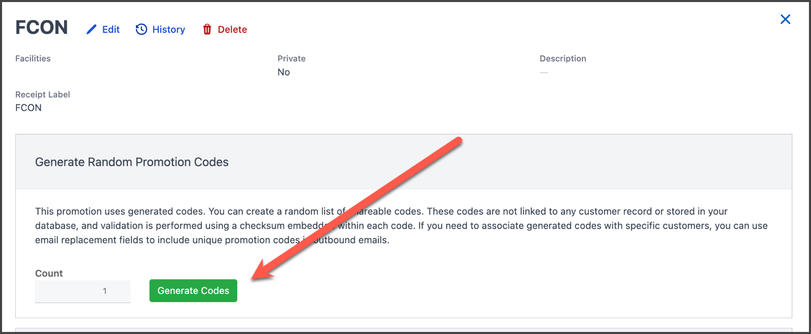Specific Promo Code redemption settings and limits for Fixed Codes and Generated Codes can be found in the Codes and Redemptions Tab: