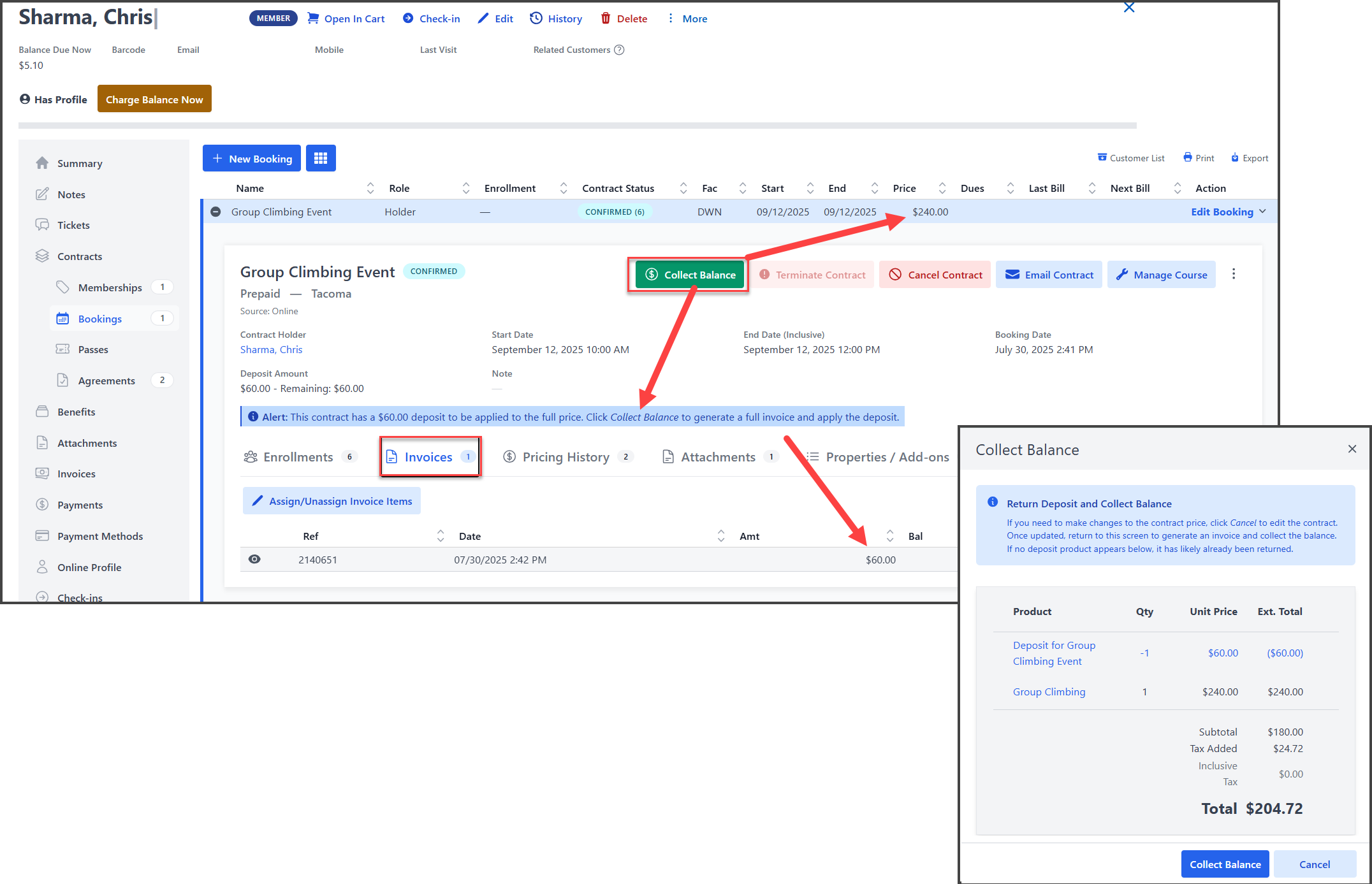 Invoice Items can now be added directly to any existing contract, allowing staff to manually add charges or issue credit. This is helpful for retroactively adding upsell items, correcting mistakes, or applying deposit credit without editing the terms of the contract.