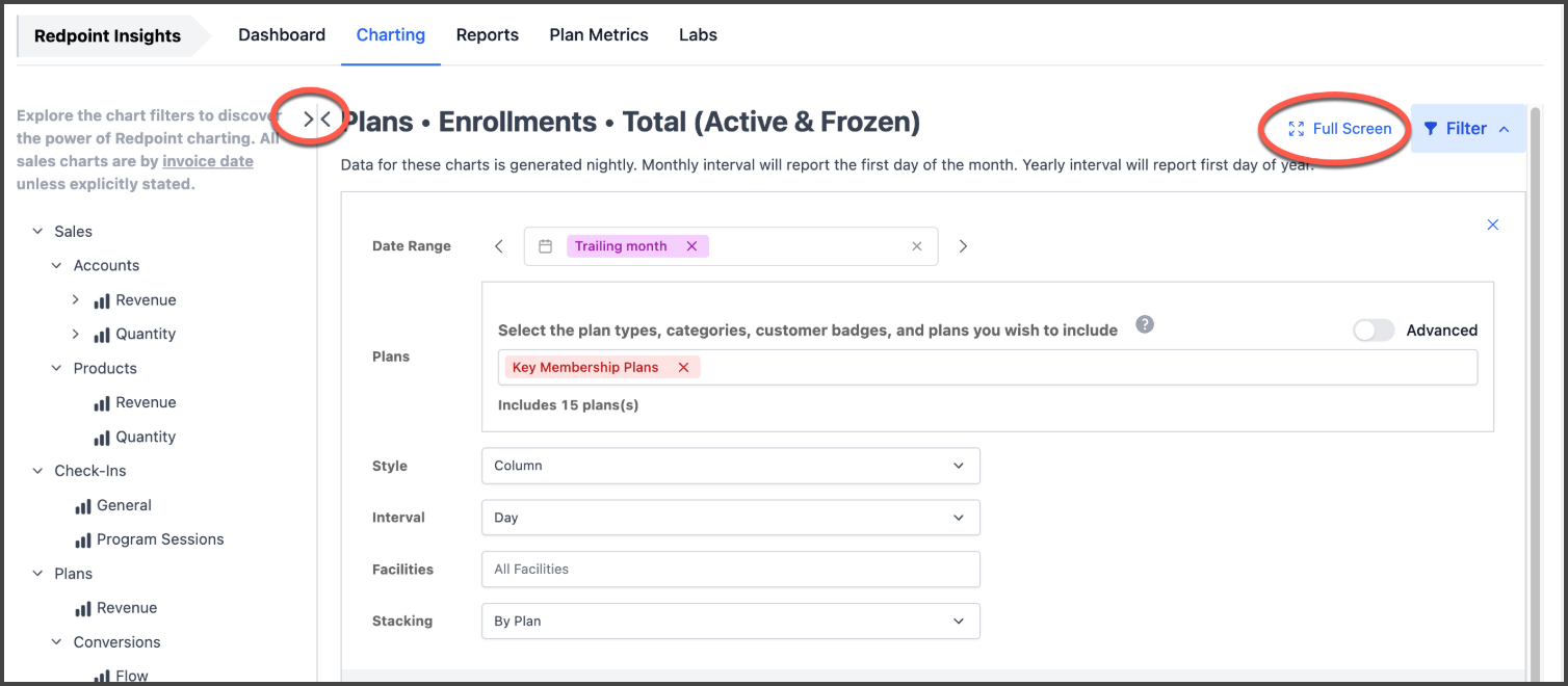 Reports/Charting: Charting and reporting windows now include a collapsible sidebar and full-screen toggle, improving visibility when working with large data grids.