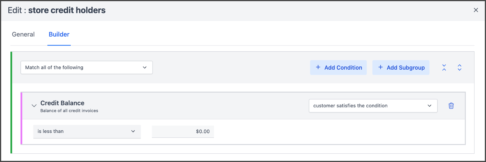 You can also change this behavior in bulk, by creating a segment for customers with available credit: