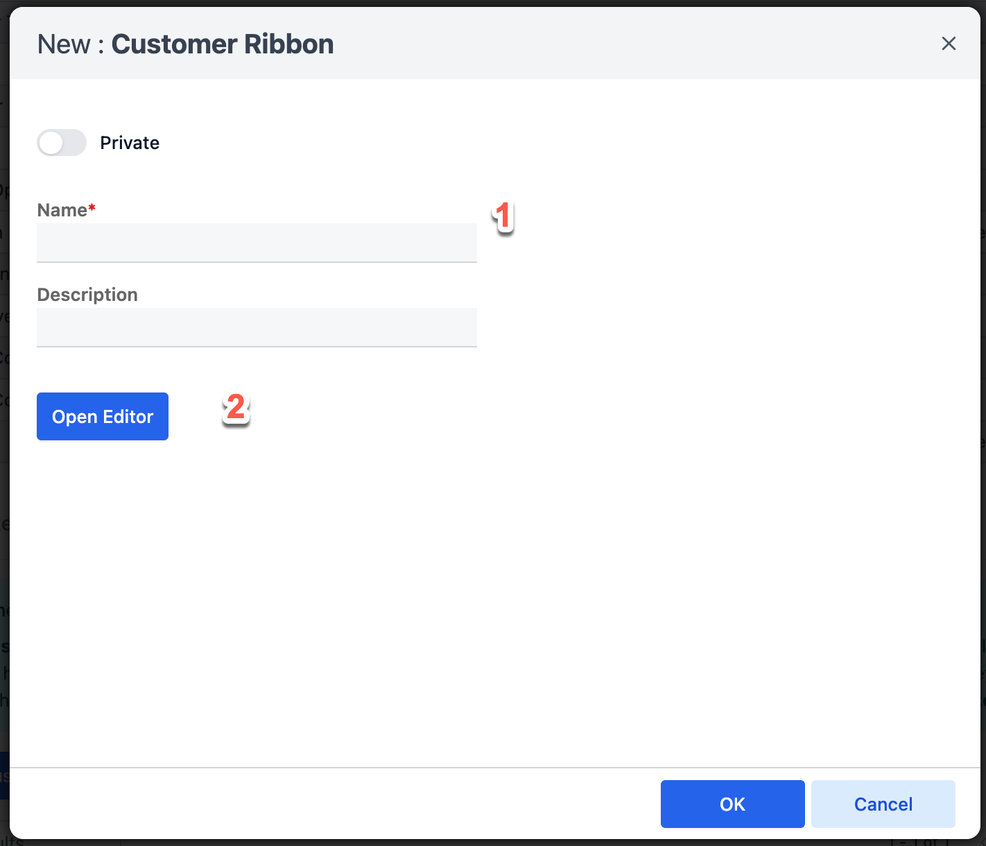- Add a name to identify what will be in this ribbon
