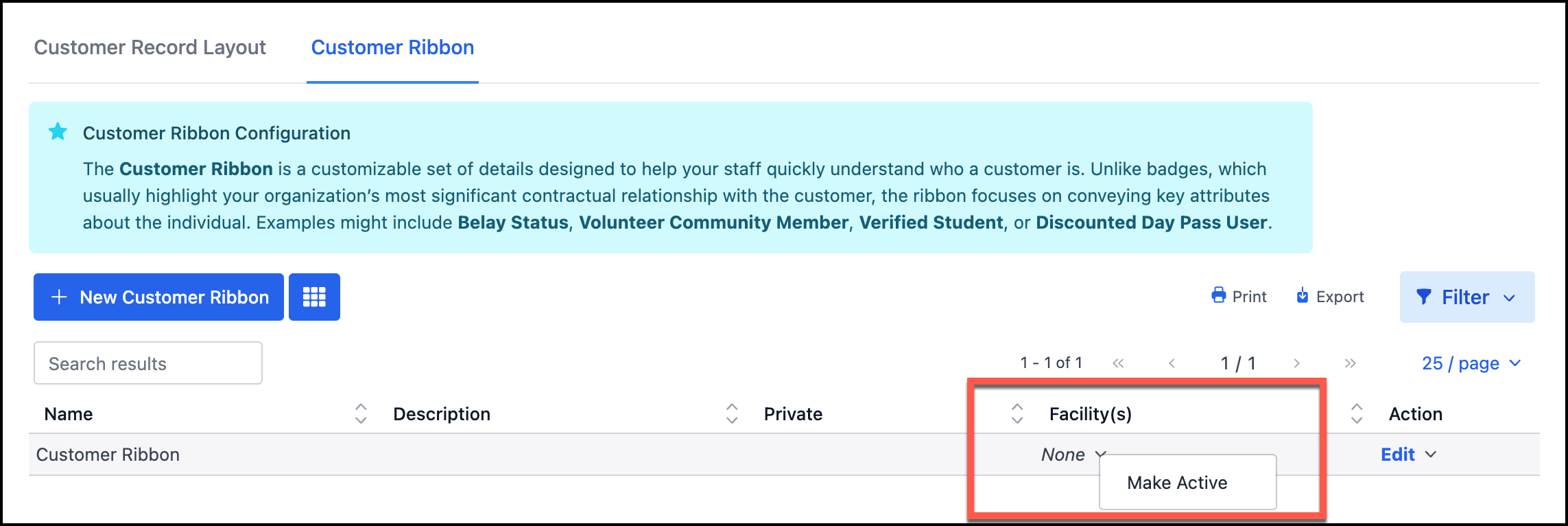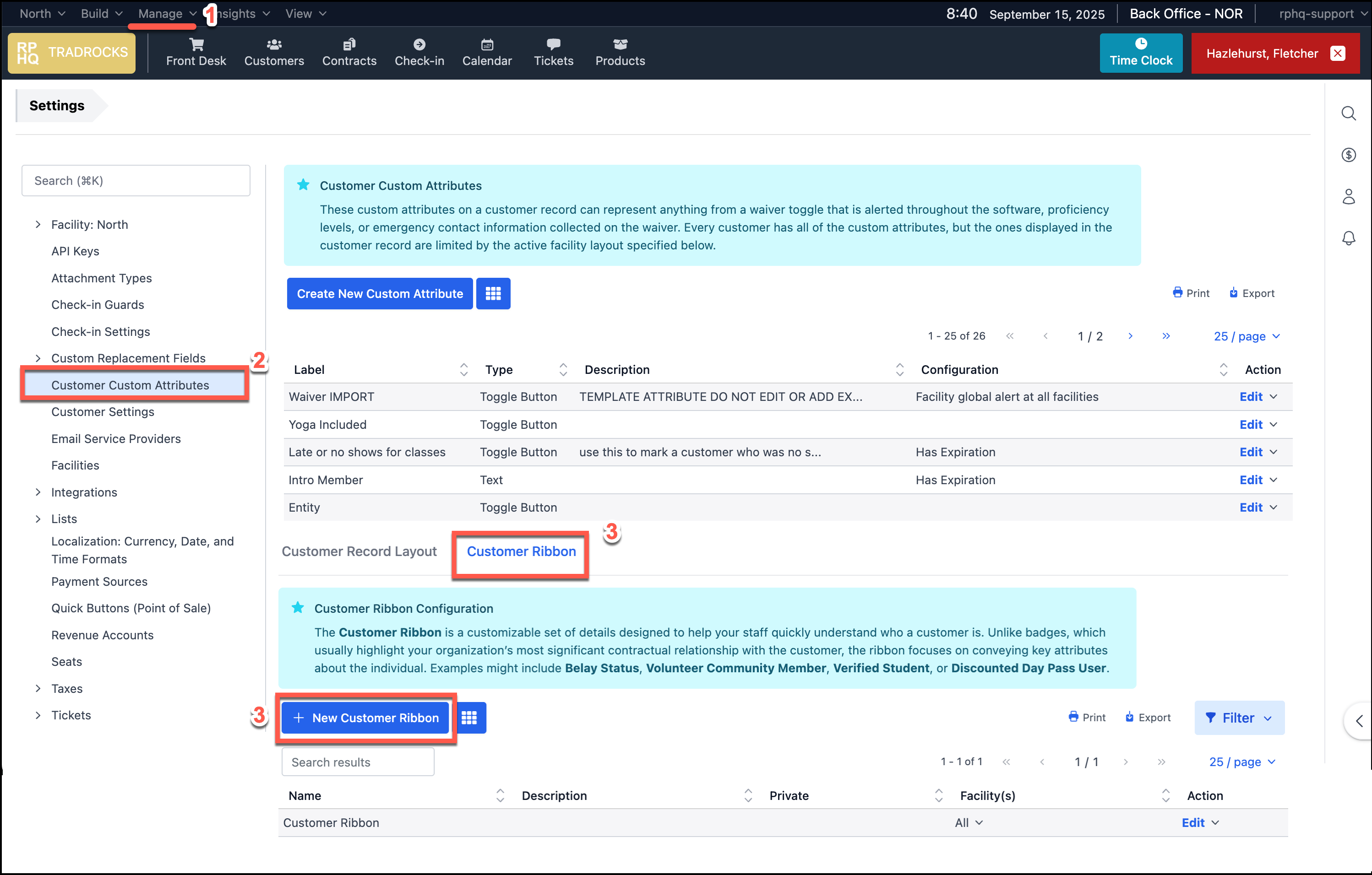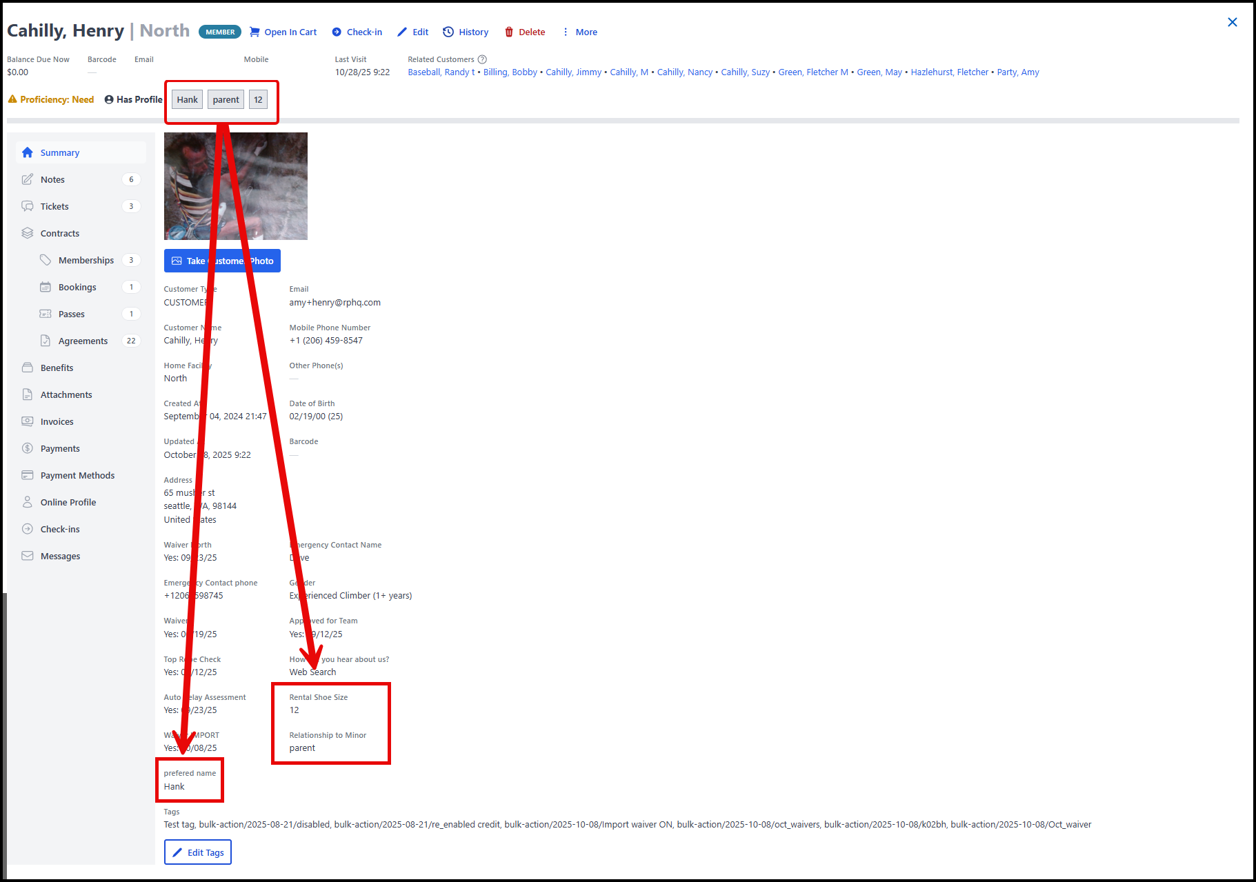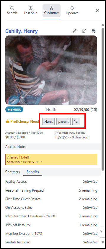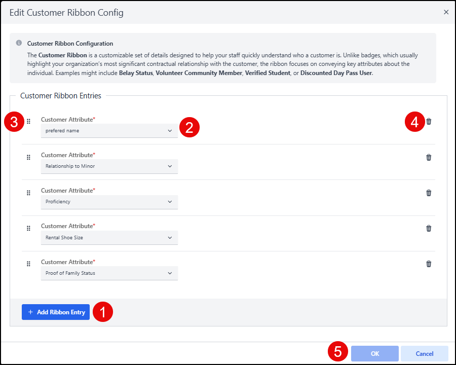 For example, Student, Belay Status, Preferred Names/Pronouns, Discounted Day Pass User, etc. are all great examples of information about the customer you can place in the ribbon.