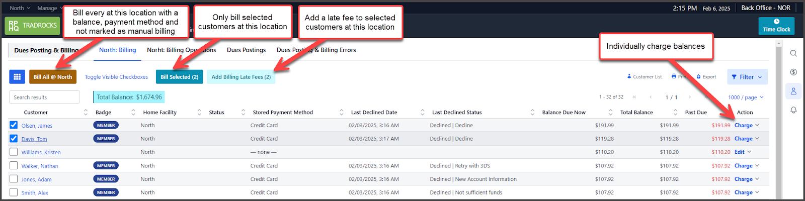 View dues posting and billing errors here. This is the same information in the Emailed Reports listed at the top of this article.