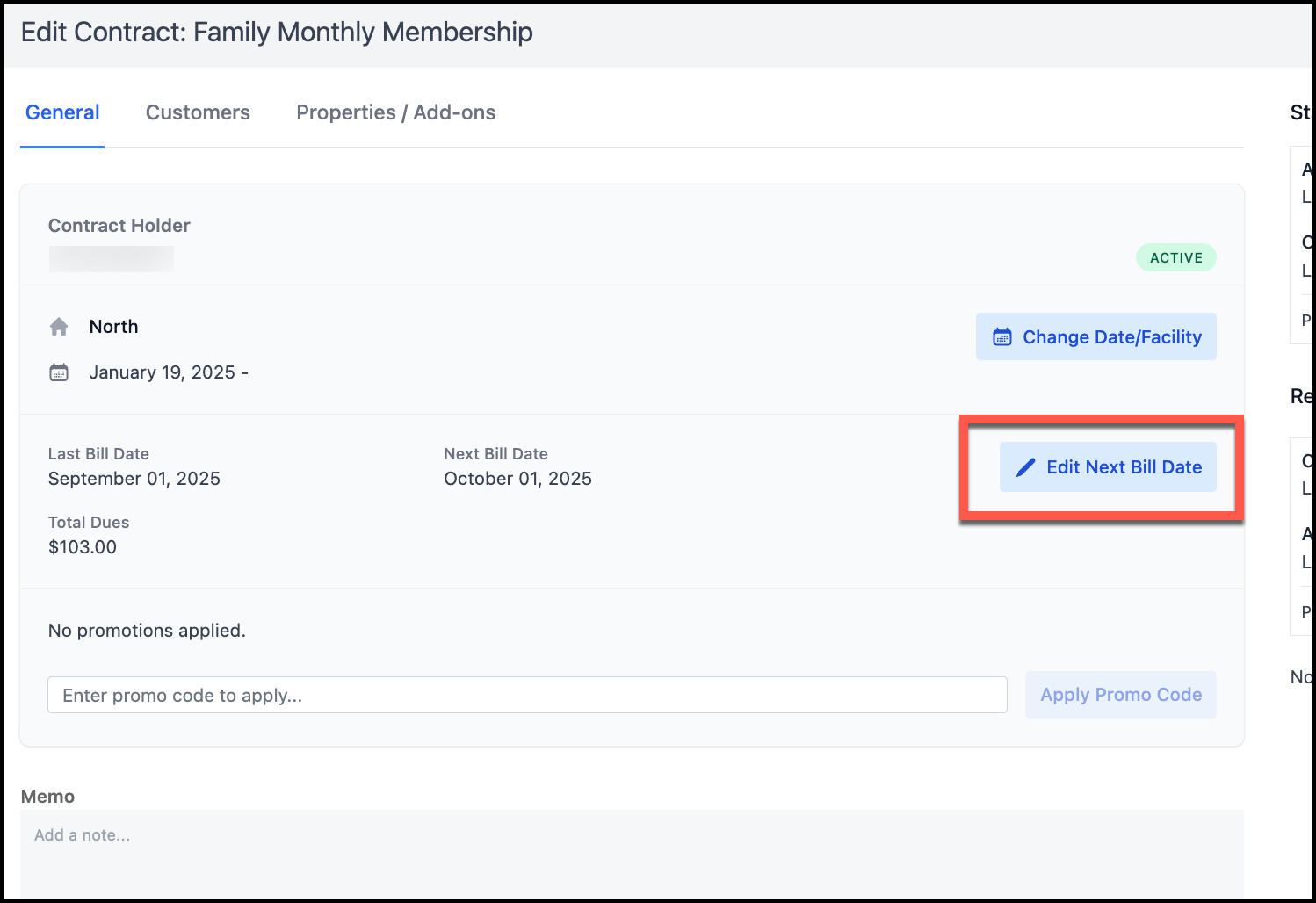 - Edit Membership and edit Next Bill Date