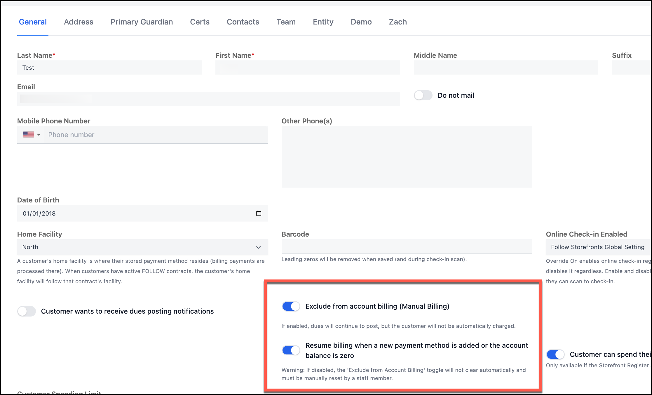Customer's with ACH (US Only) billing that decline have these toggled ON automatically. They auto-toggle off once balance is zero OR a new payment method added.