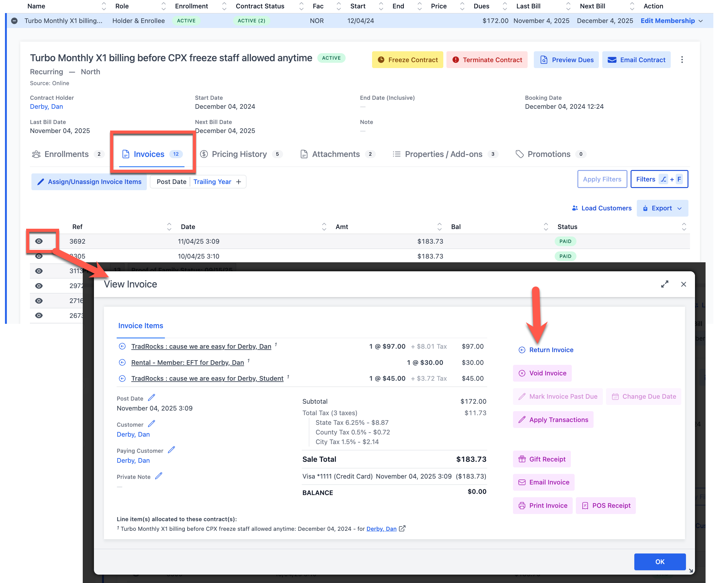 - On the Dues Invoice to be adjusted, click Return Invoice.