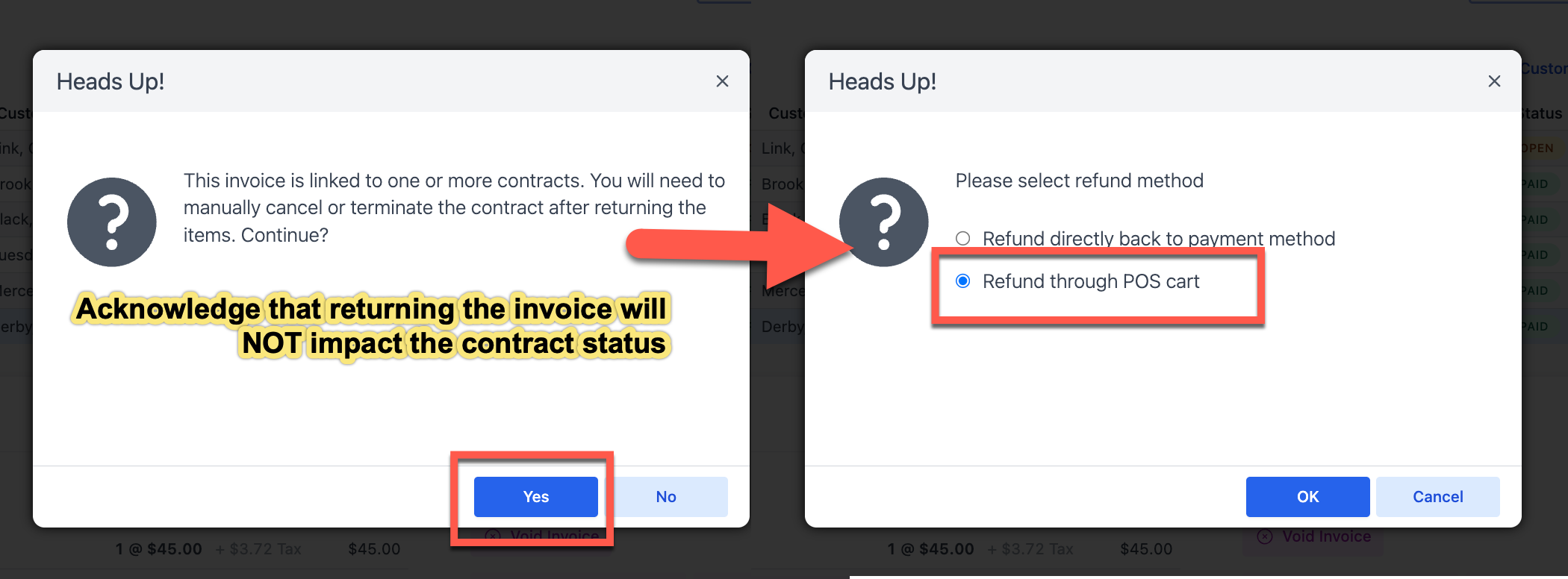 - Select Refund through POS Cart