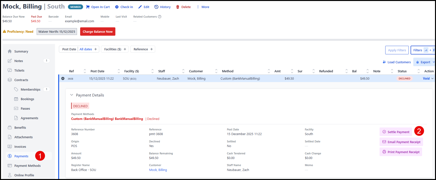 - Expand the related payment and press "Settle Payment"