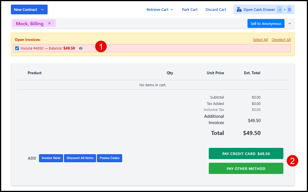 - Allows billing from non-integrated payment methods.