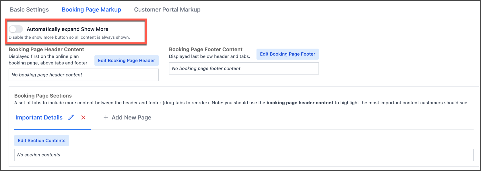 Added a Toggle to the Booking Page Markup settings to auto-expand the 'Show More' section when viewing plan details.