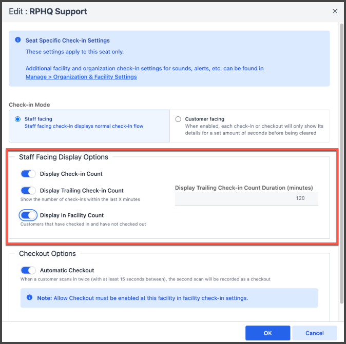 Added a new Toggle option in Staff-facing display Check-in Settings to display In Facility Count.