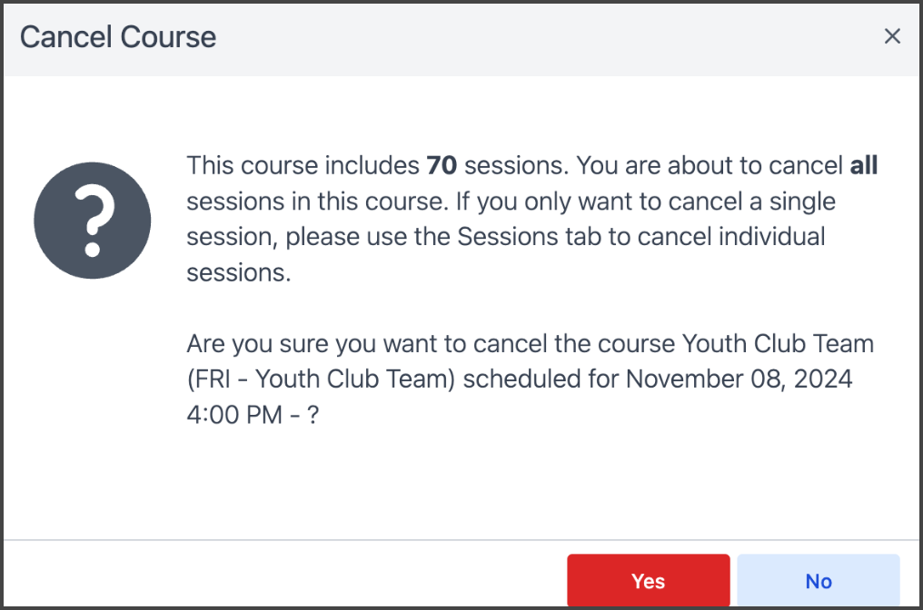 Calendar: Added a warning when canceling a course with multiple sessions.