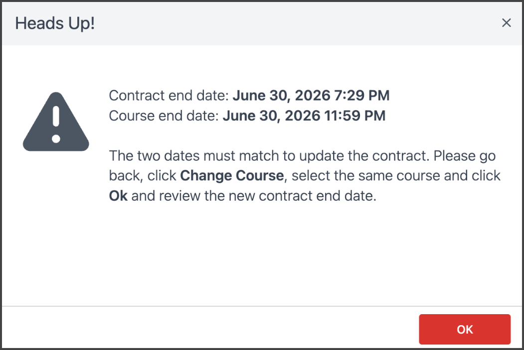 Contracts: Improved error message when course/contract end dates are mismatched.