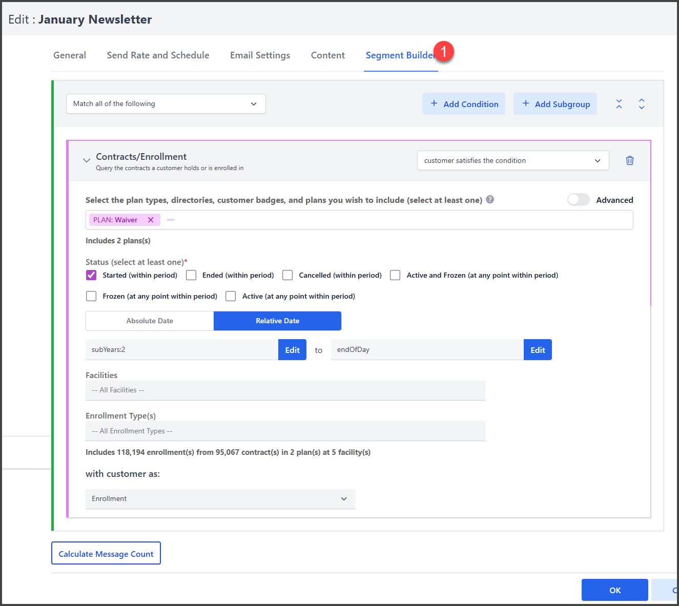 In Segment Builder, define the customer segment in you want to send the dispatch to.