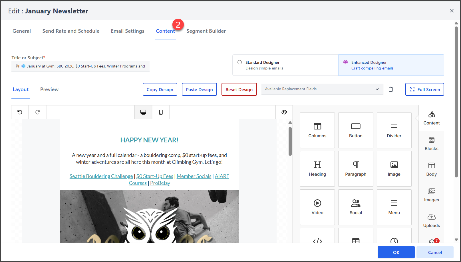 In the Content editor, you can utilize Redpoint's built in Standard or Enhanced Designers.