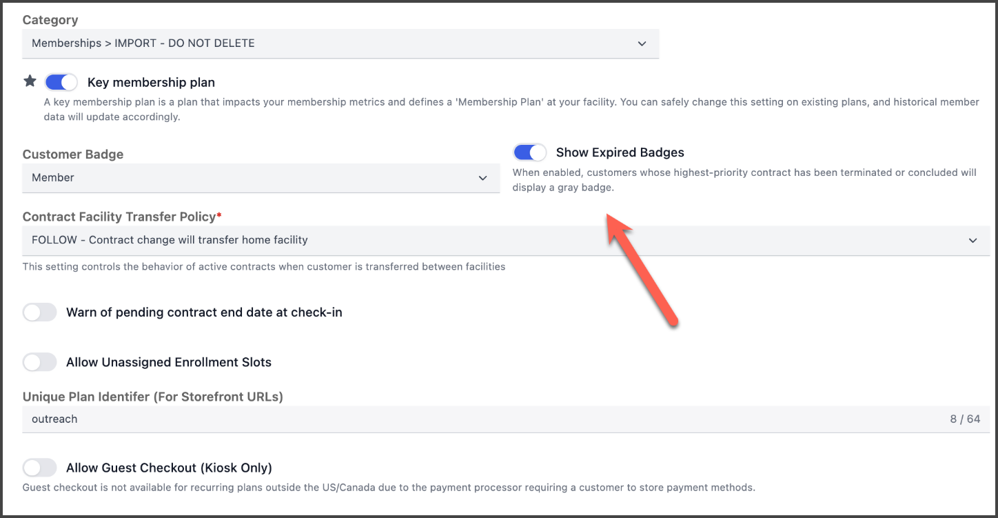 In Plan settings 'Big Edit' > General (Tab) > Show Expired Badges (Toggle)