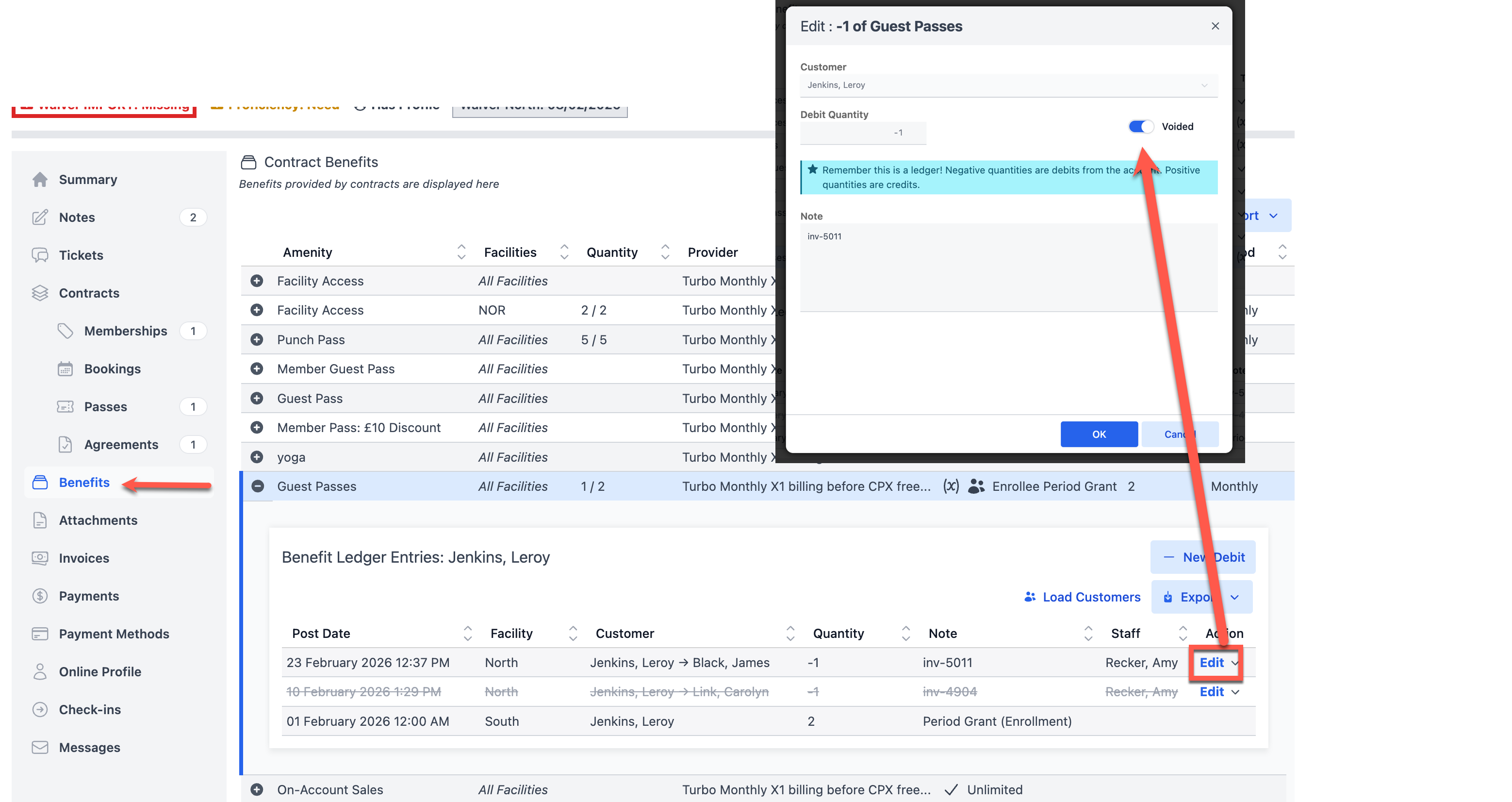 You can also view and void the debit from the Contract instead of the customer's benefits tab