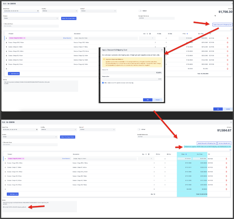 Item Receipts: Shipping costs and percent discounts can now be applied to item receipts