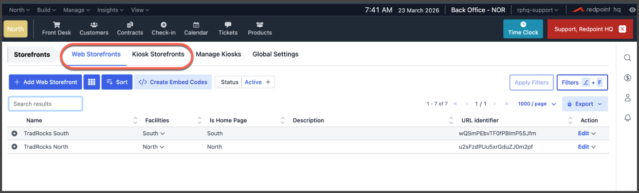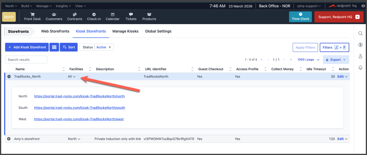 Storefronts: Kiosk/Web Storefronts can now be reused across facilities