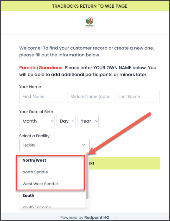 Customer Portal: Facility Groups are now displayed in facility selection dropdowns