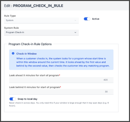 Check-In: Added an option to limit program-based check-in rules to the local day