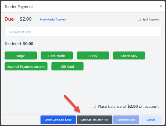 Added a payment option to 'Pay By Credit Card On File' directly from the POS.