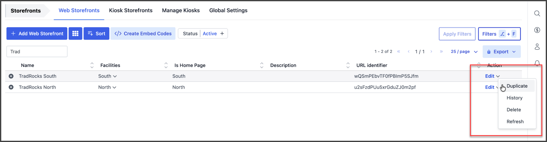 Storefronts can now be duplicated and shared across multiple locations, each with their own URL.