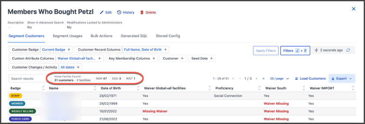 Enhanced view of customer segments and total counts across all facilities, even when the full grid view cannot be displayed due to view limit (5000 count).