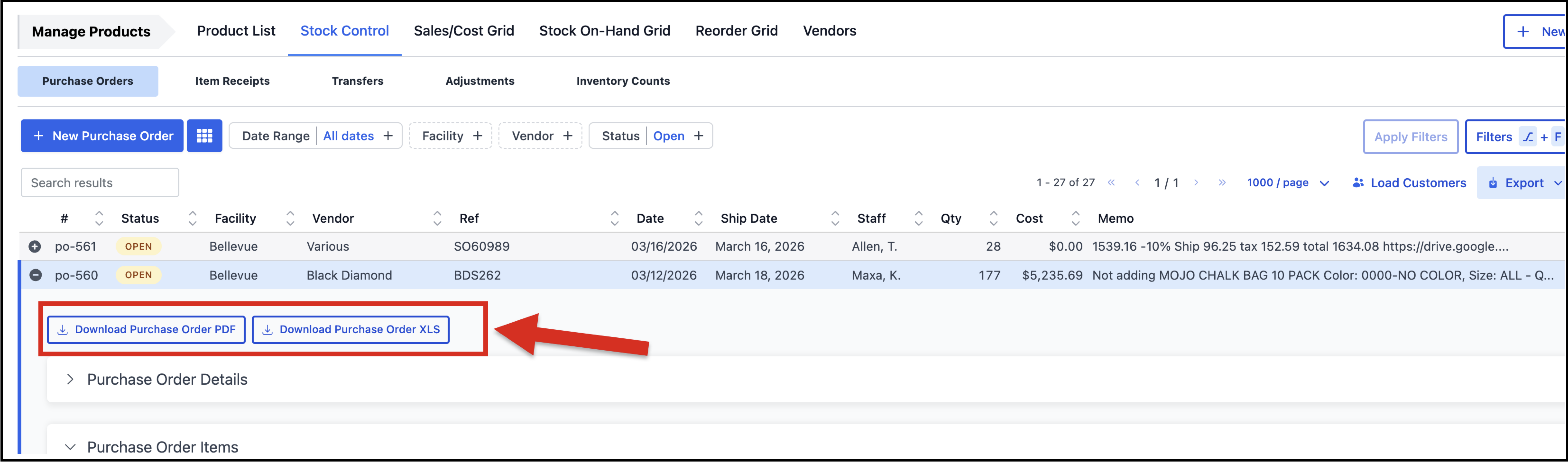 Purchase Orders: PDFs and Excel Files of Purchase Orders can now be downloaded