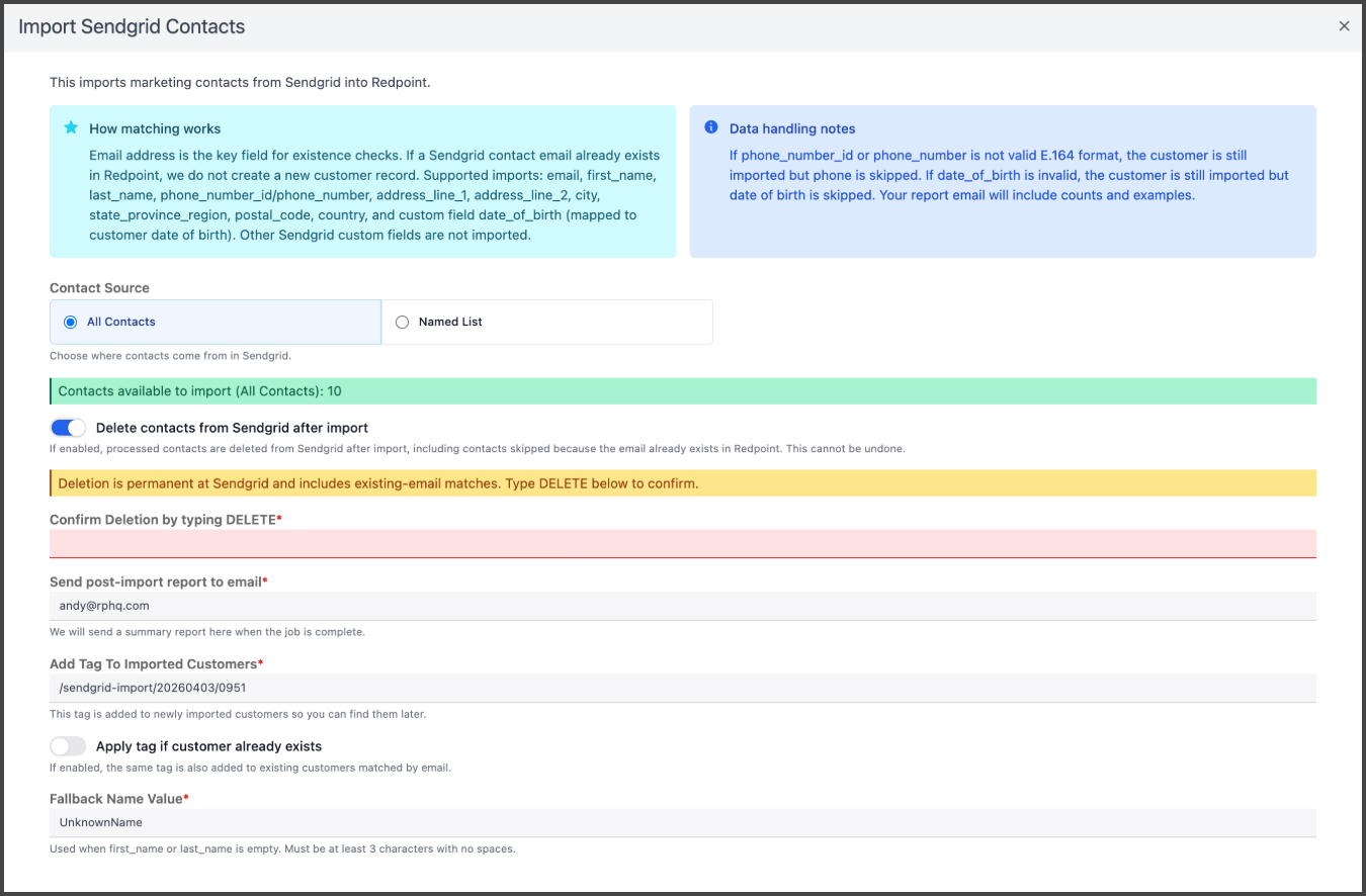 SendGrid: Added a tool to import Sendgrid marketing contacts