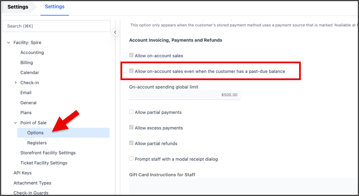 Facilities can now choose whether customers with past-due balances are still allowed to make new on-account purchases.